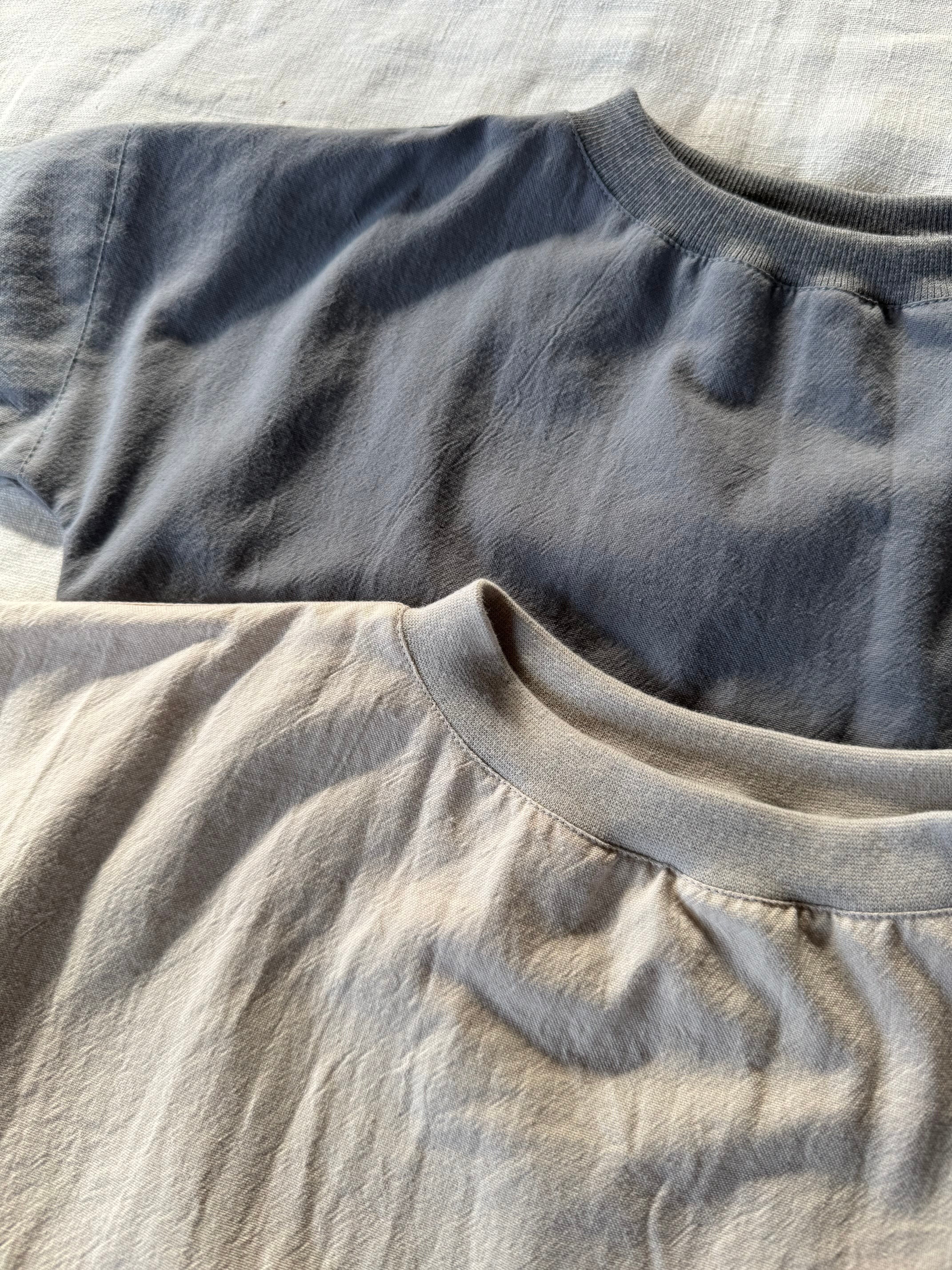 身幅もゆったりしており、重ね着もお楽しみいただけます。気温差のある朝夕の体温調節にいかがでしょうか。洗えば洗うほどさらに柔らかくなっていく素材をお楽しみください☺︎