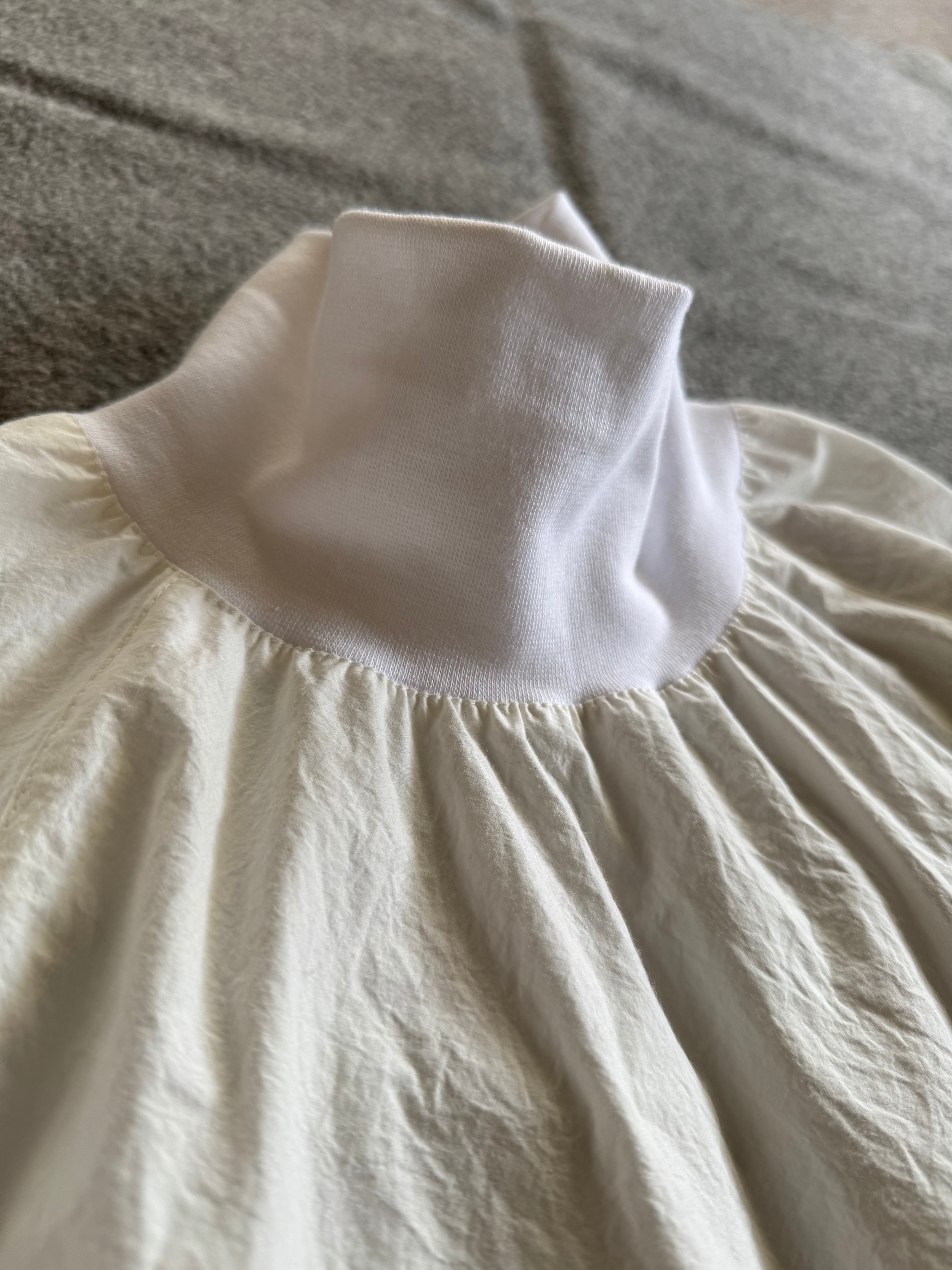 パリパリ音の楽しいタイプライター生地を使ったプルオーバーシャツです。カジュアルにも綺麗めにもどんなものにも合わせられるのでコーディネイトも楽ちんです。