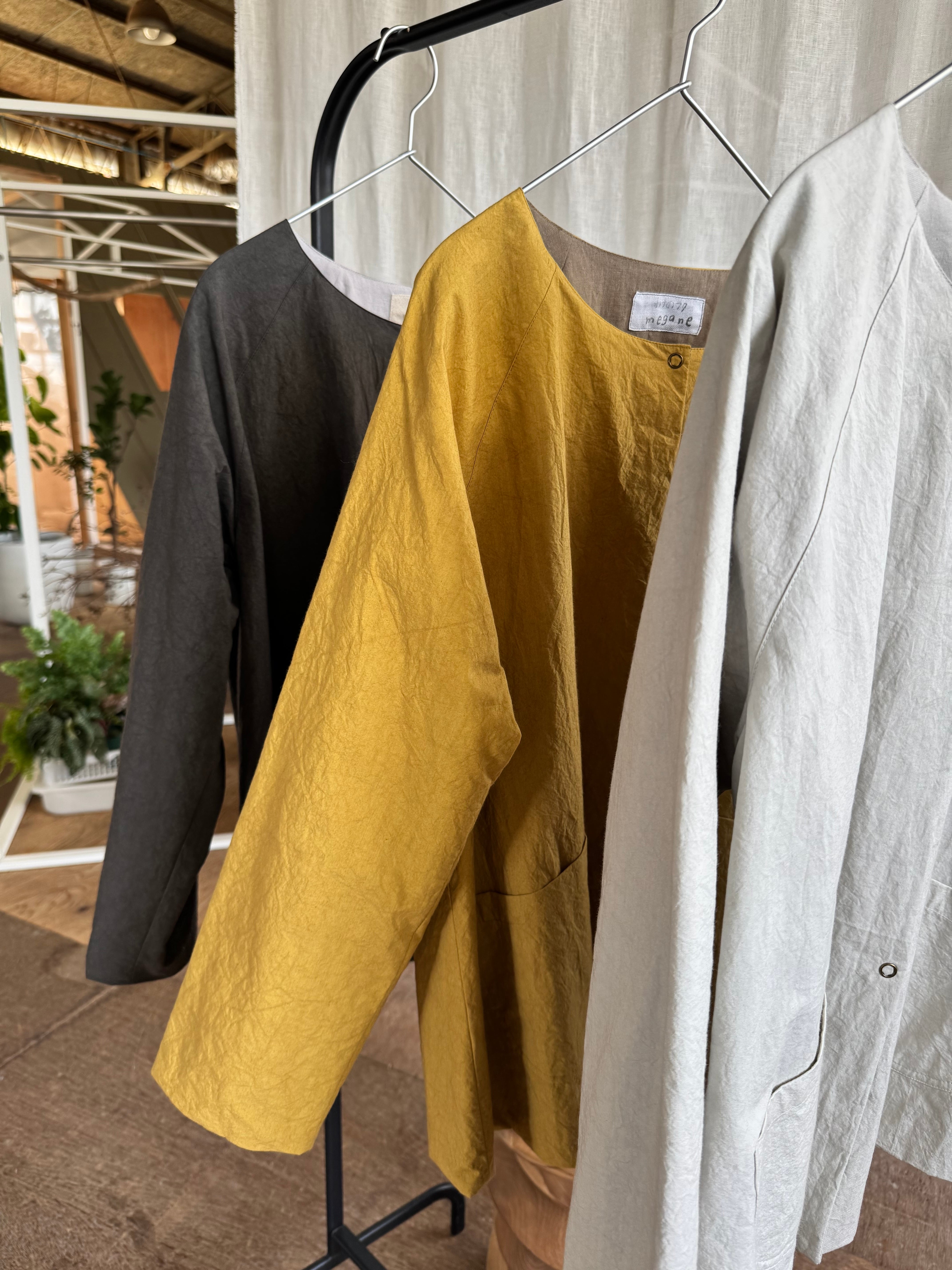 使うほどにくったりと優しい風合いが増していきます。2カ所あるボタンも、止めても◎止めなくてそのまま羽織っていただくのも◎