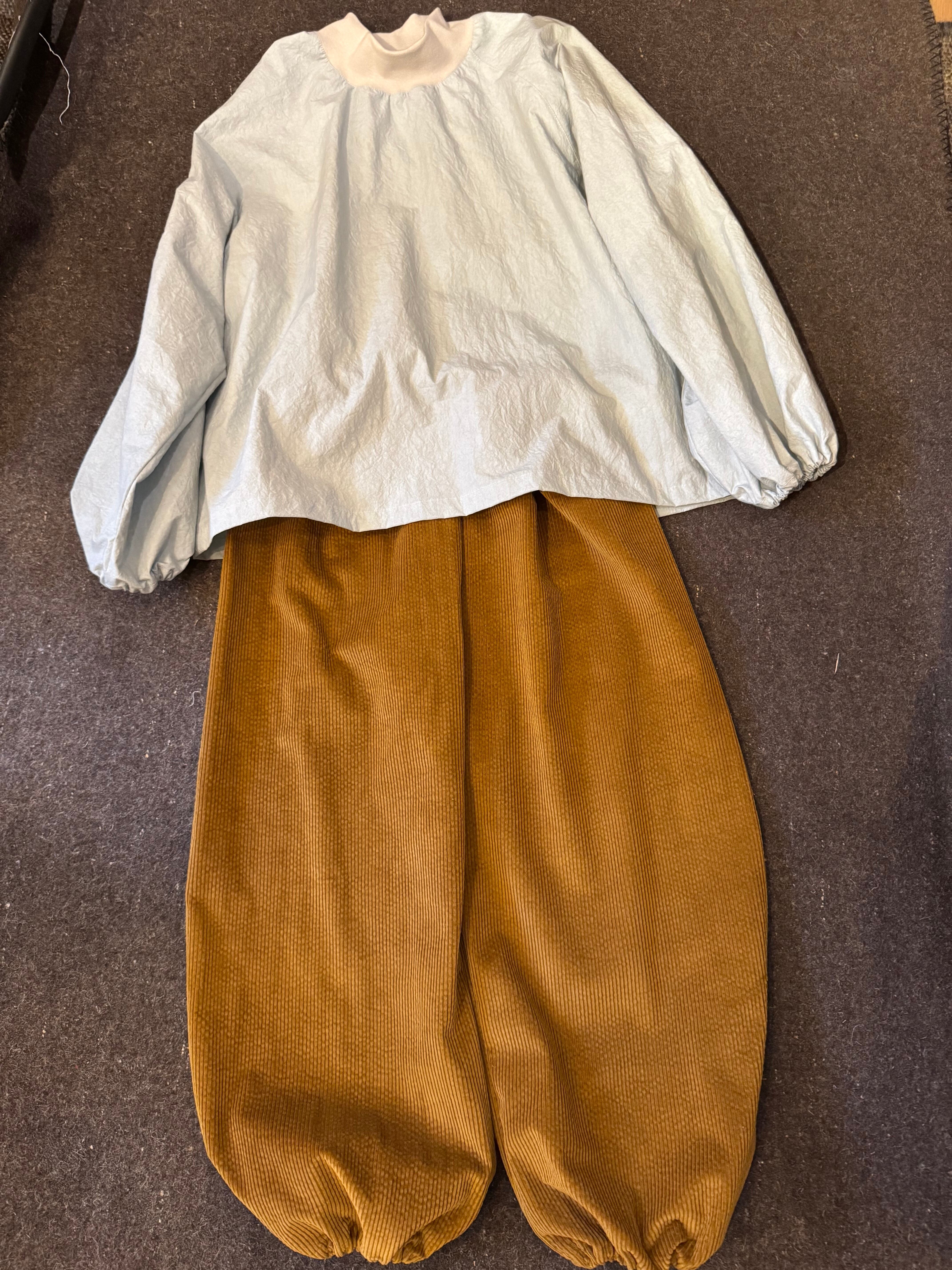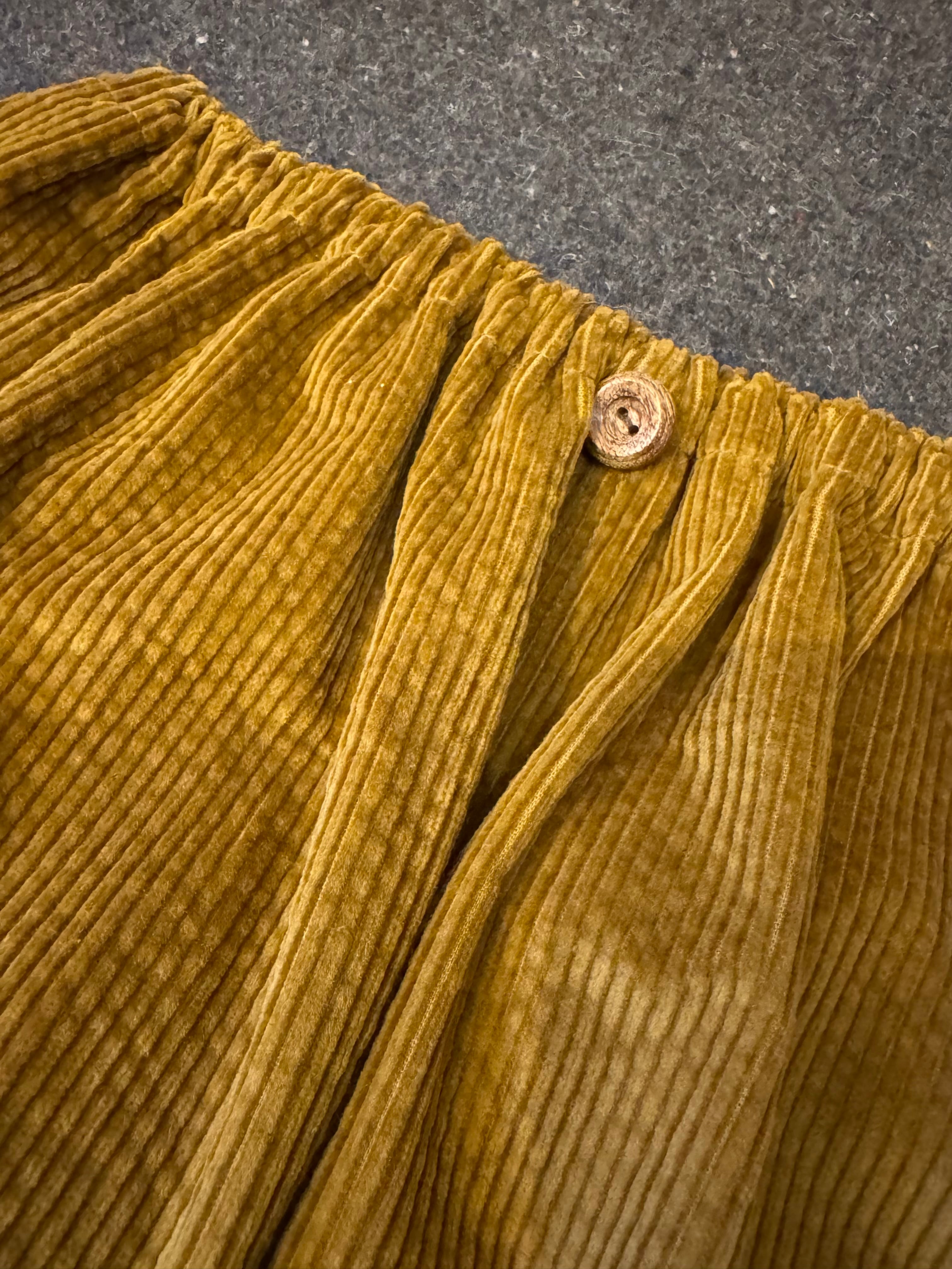 優しくて柔らかな肌触りのコーデュロイ生地です。ゆったりしているので、レギンス等の重ねばきもしていただけます。