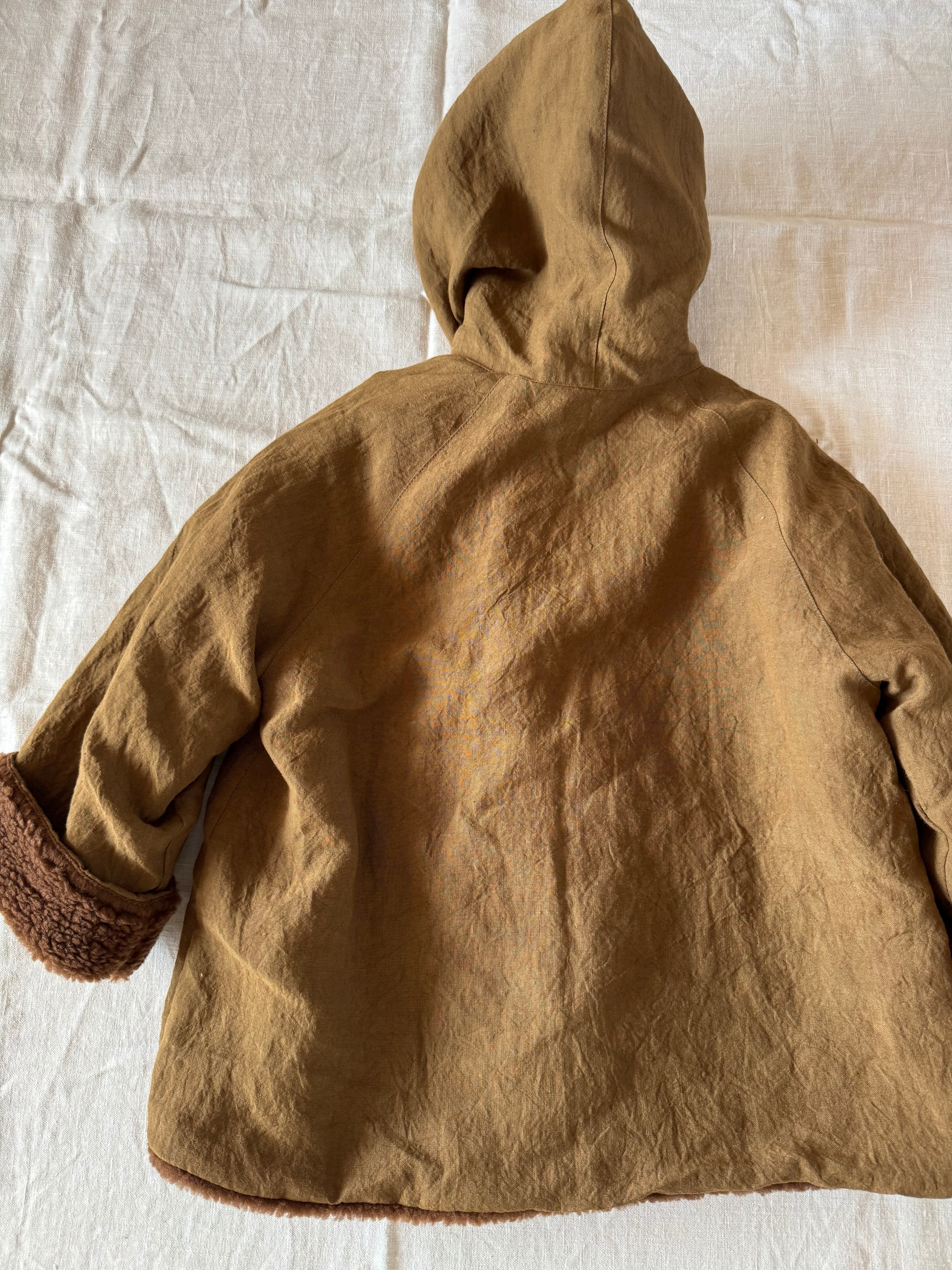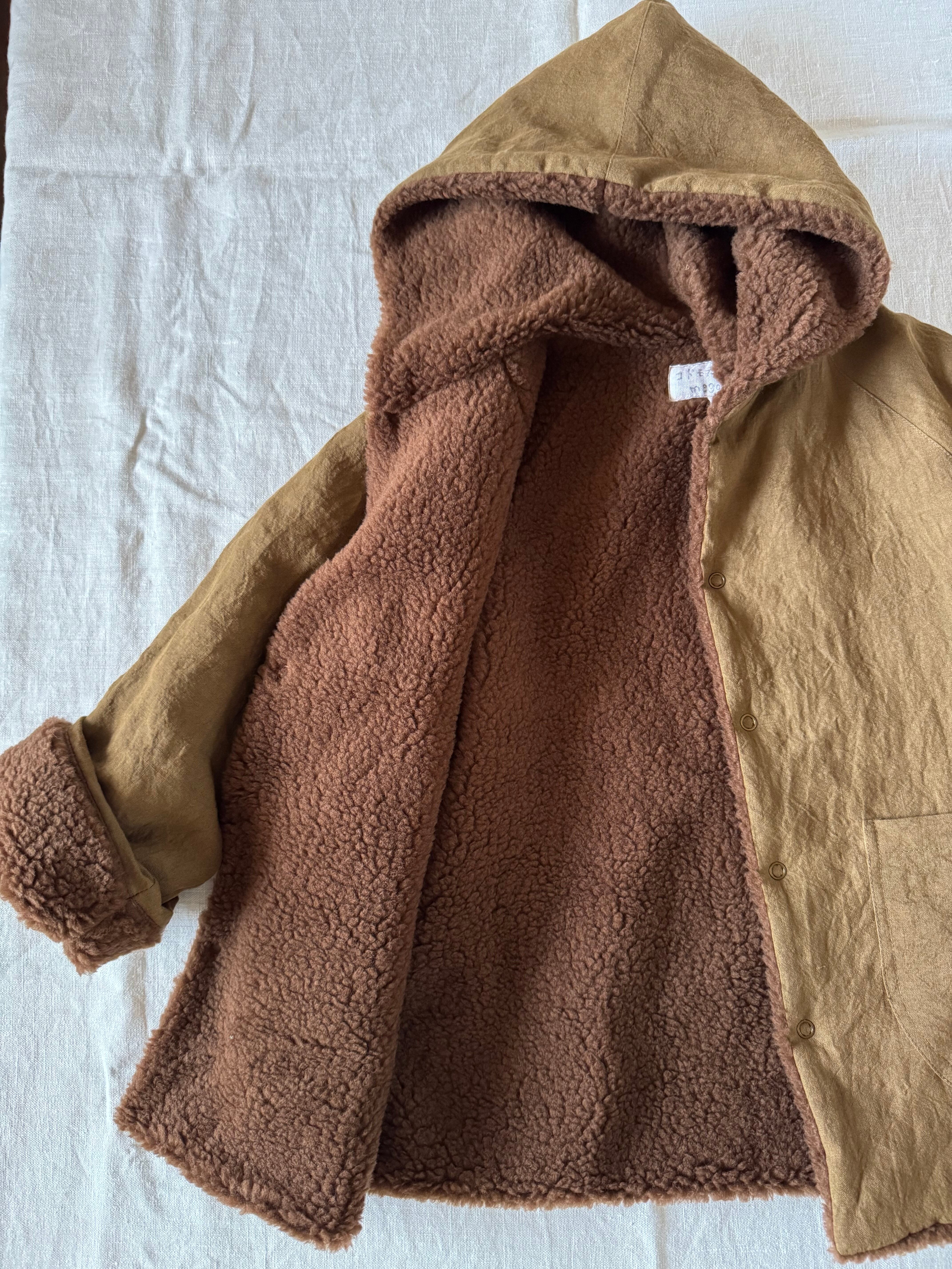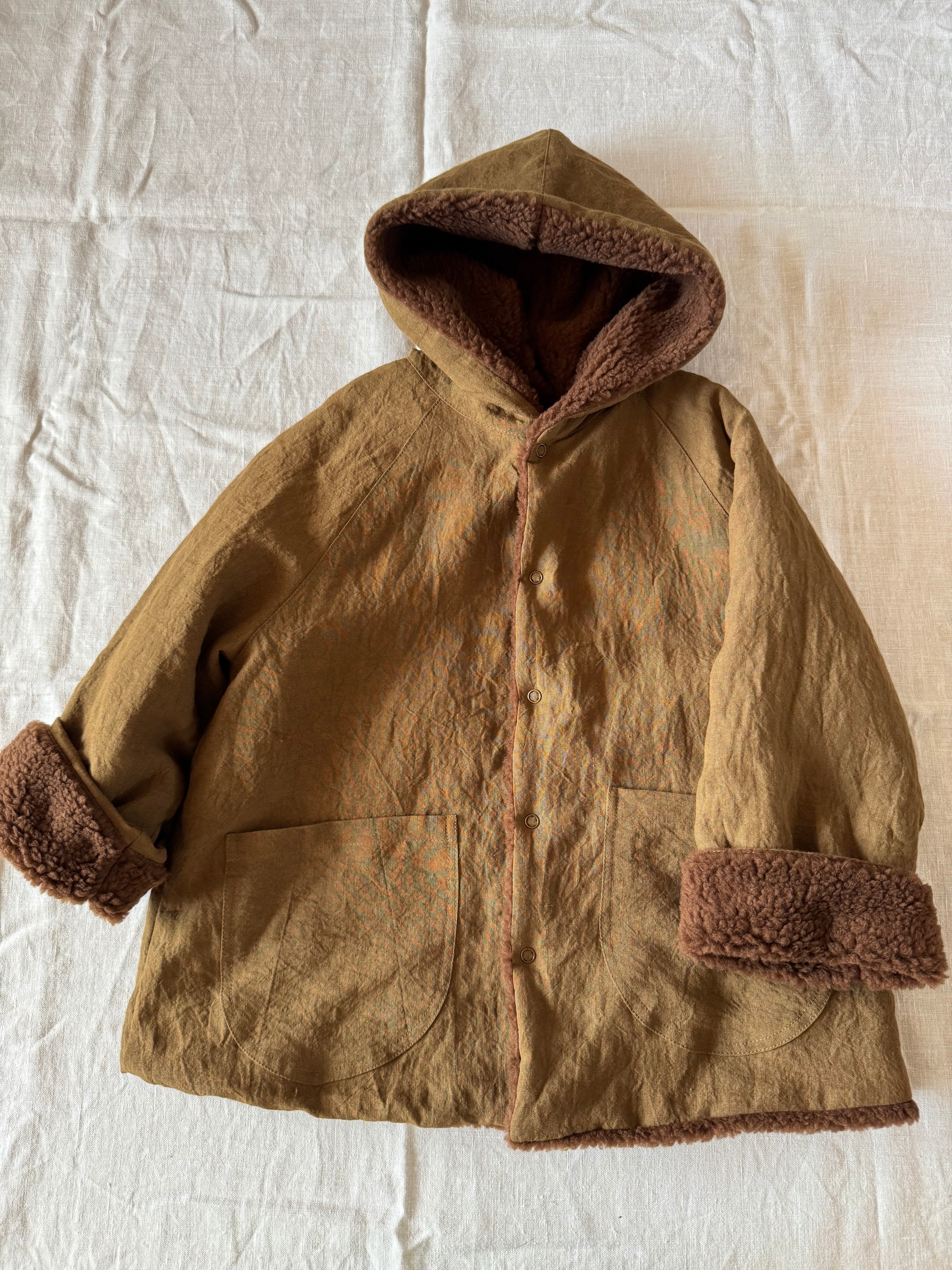 表はリネン、裏はボアのコートです。